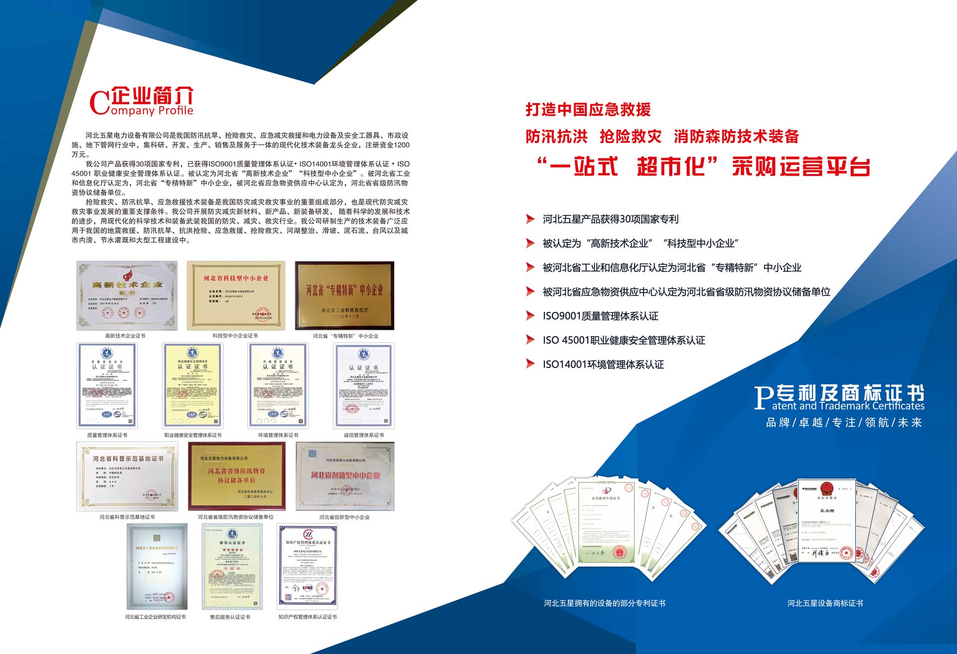 河北五星電力設(shè)備有限公司是我國(guó)防汛抗旱、搶險(xiǎn)救災(zāi)、應(yīng)急減災(zāi)救援和電力設(shè)備及安全工器具、市政設(shè)施、地下管網(wǎng)行業(yè)中,集科研、開發(fā)、生產(chǎn)、銷售及服務(wù)于一體的現(xiàn)代化技術(shù)裝備高新技術(shù)企業(yè),注冊(cè)資金1200萬元。